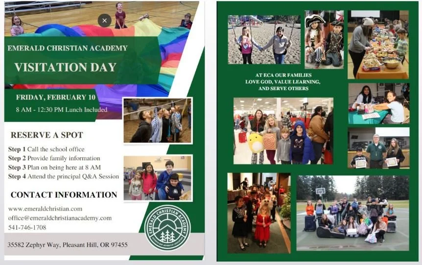 Our next 1/2 day Friday in February, Feb. 10, will be our winter visitation day. We are excited to see our school grow, and we are always trying to find ways to make our program better to meet our community’s needs. The visitation day will last the entire 1/2 day Friday and visiting families will be able to have a sample of what makes ECA special. There will also be a session time to meet with the principal for a Q&A session. Students already attending ECA will be moving up a grade for the day. Eighth grade students will be helping out homeroom teachers during the day. There will be a hot lunch offered that day and visiting families eat for free. If you have any questions about this day, just call the office and they will be happy to help you.
