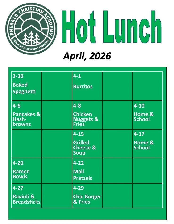 There will be no school on Monday, April 13. Four times a year, our staff have professional development days. These are days set by our conference. We will have a makeup 1/2 day Friday on April 17. Something special happening on that Friday, April 17 will be the music concert presented by a larger sister school, Upper Columbia Academy. UCA is on their Spring music tour and will be staying at our school the night before. Some of our ECA students have gone to UCA in the past and we are excited to welcome back Brianna Littman with the school tour. You are invited to attend this 8:30 morning program.