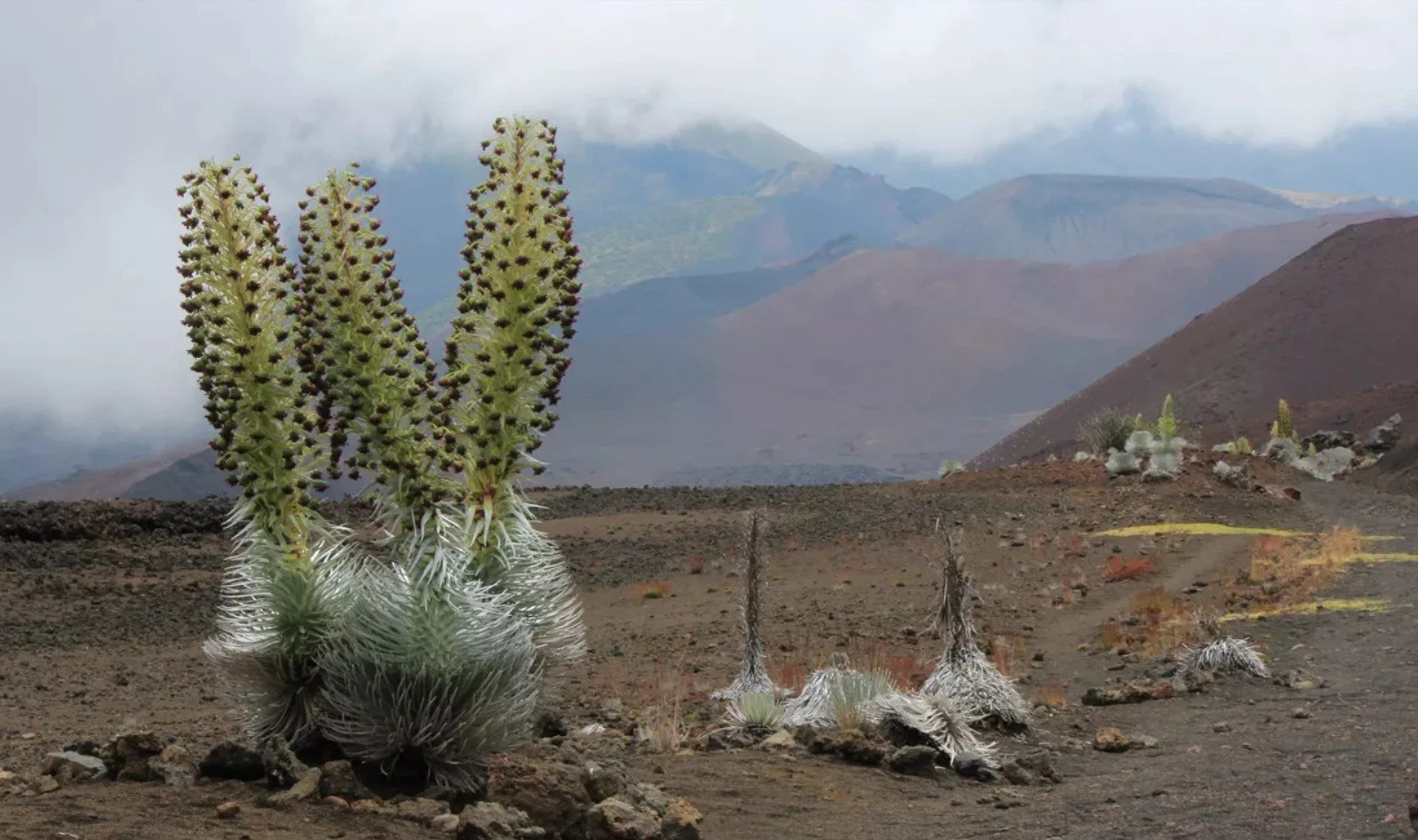 The trip takes almost two hours to go a little over 10 miles. What looks like a short distance on a map is filled with switchbacks after switchbacks, blind corners, drop-offs, driving through clouds, and a final victory for the rental car. The summit is also home to an incredibly rare flower that can live about 90 years, but only blooms ONCE in its lifetime and then dies shortly after - the Haleakalā silversword.