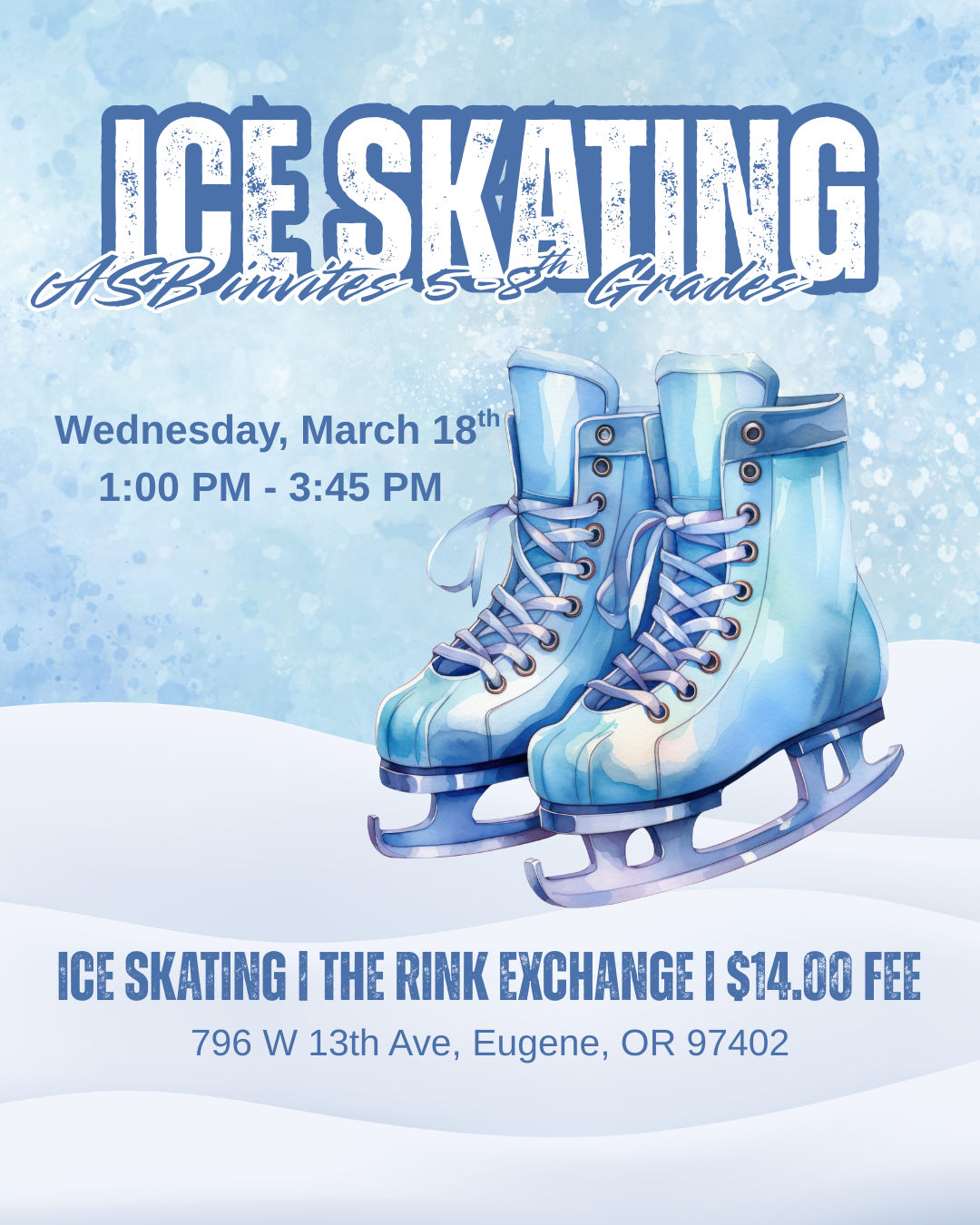 Wednesday, March 18 - ASB (Grades 5-8) Afternoon Ice Skating