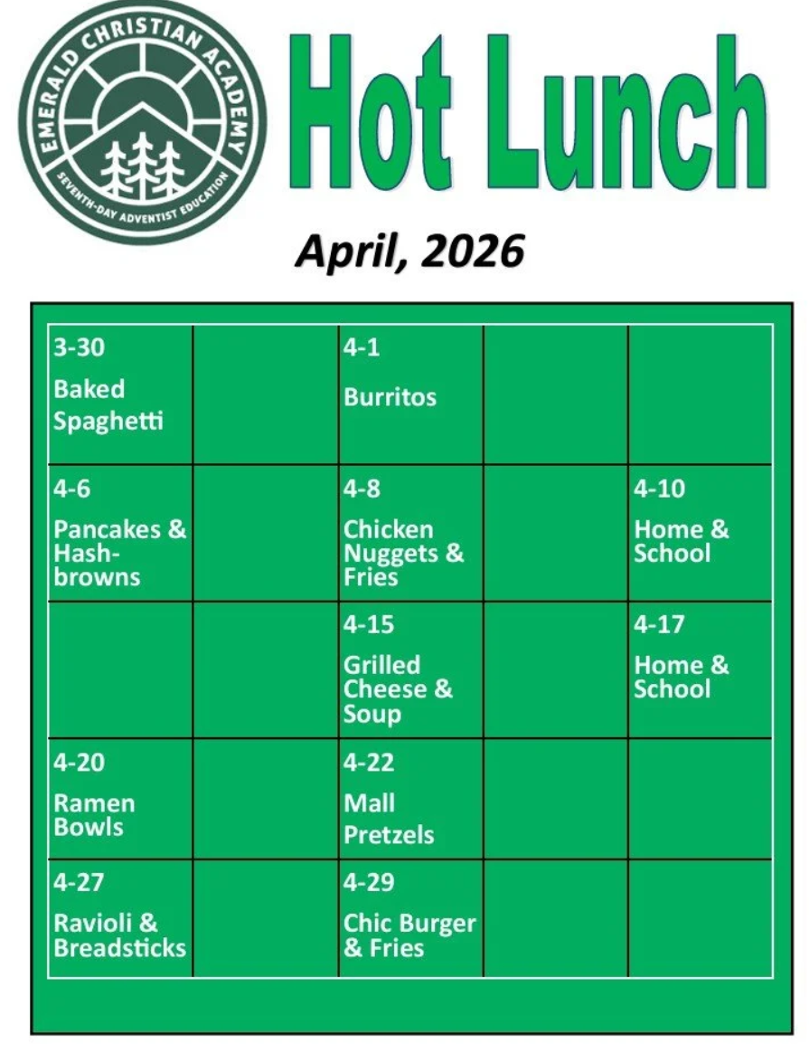Hot lunch happens every Monday and Wednesday. Additionally, whenever we have a “regular” 1/2 Friday, hot lunch will be offered by our Home & School. You can click on the link below to order hot lunch for the week for your child. If you have more than one child, please click the link more than once and turn in one week’s submission for each child. There is a payment option that is included in the form.